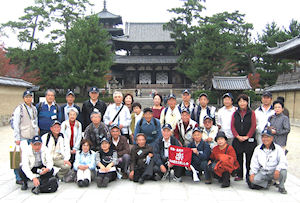 JR長岡京駅に集合、JR、近鉄、奈良交通バスと乗り継いで法隆寺に着きました。 午前は近くの藤ノ木古墳を見物し、秋の季節料理を頂いた後、午後に法隆寺を見学しました。 さすが世界文化遺産で、19棟の国宝建築物がありました。大宝蔵院(宝物館)では百済観音、玉虫厨子はじめとする数々の国宝があり見ごたえがありました。 また夢殿では幸運にも本尊の秘仏「救世観音」が特別開帳されていました。 最後に中宮寺で国宝木造「菩薩半跏像」を時間いっぱい見て、帰路につきました。 お疲れさまでした。 *必要な写真はダウンロードしてプリントすることもできます